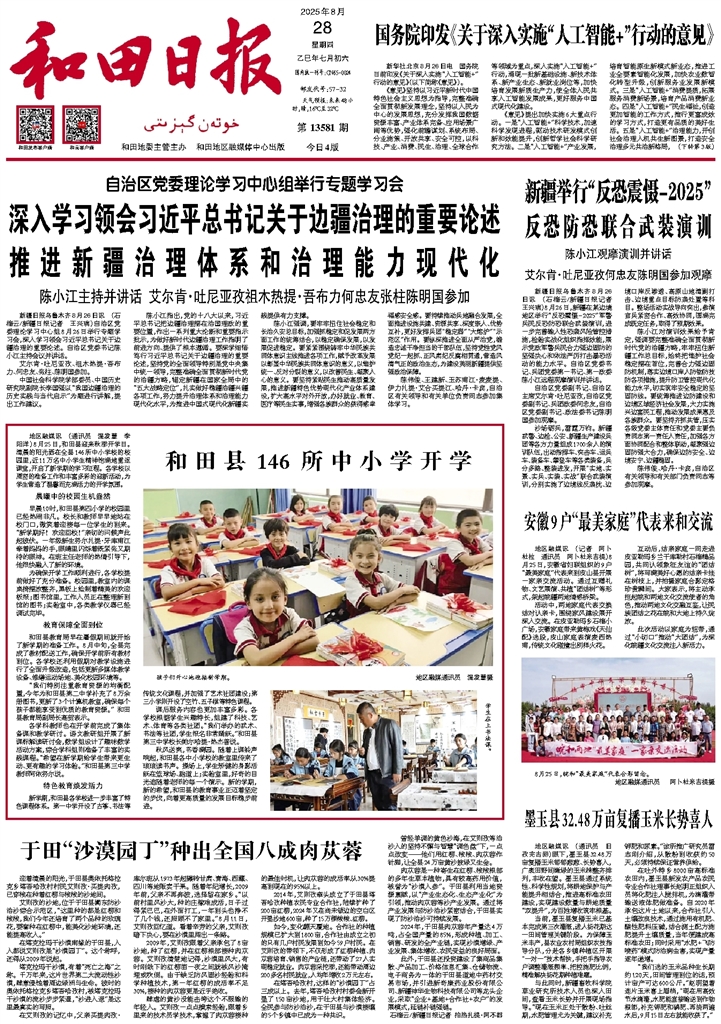地区融媒讯 (通讯员 温发慧 李阳洋)8月25日,和田县迎来秋季开学日。清晨的阳光洒在全县146所中小学校的校园里,近11万名中小学生精神饱满地重返课堂,开启了新学期的学习征程。各学校以周密的准备工作和丰富多彩的迎新活动,为学生营造了温馨而充满活力的开学氛围。