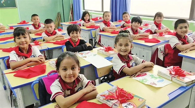 早晨10时,和田县第四小学的校园里已经热闹非凡。校长和教师早早地站在校门口,微笑着迎接每一位学生的到来。“新学期好!欢迎回校!”亲切的问候声此起彼伏。一年级新生努尔扎提·牙库甫江牵着妈妈的手,眼睛里闪烁着既紧张又期待的眼神。在班主任老师的热情引导下,他很快融入了新的环境。