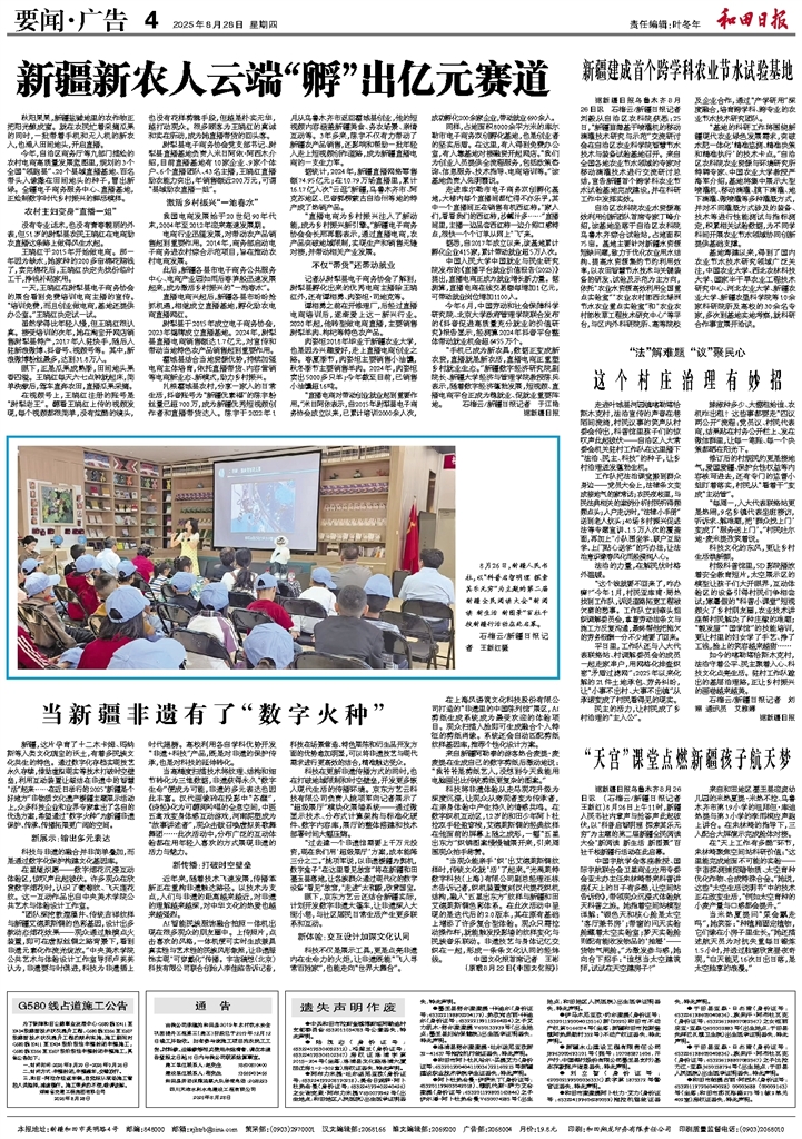 - 当新疆非遗有了“数字火种” 新疆,这片孕育了十二木卡姆、玛纳斯等人类文化瑰宝的沃土,有着多民族文化共生的特色。通过数字化存档实现技艺永久存续,借助虚拟现实等技术打破时空壁垒,利用互动装置让凝结在非遗中的智慧“活”起来……在近