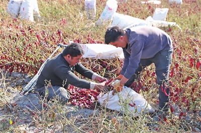 “艾散和他弟弟干活特别踏实,工作交给他们我也放心。”和静县协比乃尔布呼镇查村辣椒种植户马晓宁说。