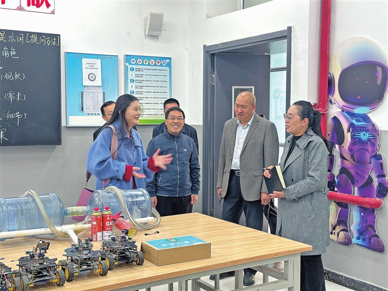 专家先后走访和田市第五中学、和田市技师学院、地区第二中学等院校,实地考察书法教室、科技教室、思政课教研室、钱学森航天科技文化馆等教学场地。在和田市技师学院,专家细致察看学生汽车维修实操、茶叶炒制、裁缝技艺教学及物流实训等现场;在地区第二中学,认真翻阅援疆教师工作台账,聆听劳模工匠创新工作室成果介绍,并与师生深入交流。
