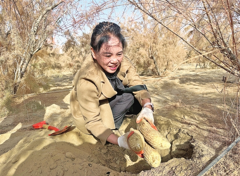 于田县林草局党组副书记、局长阿里木江·麦麦提如则介绍,于田县肉苁蓉产量占全国八成。依托塔克拉玛干沙漠锁边工程,当地在红柳和梭梭林下种植肉苁蓉,实现经济效益与生态效益双赢。下一步,于田县将完善道地中药材交易市场,通过“企业+基地+合作社+农户”模式延链补链强链,为中国沙地大健康产业提供“于田方案”。