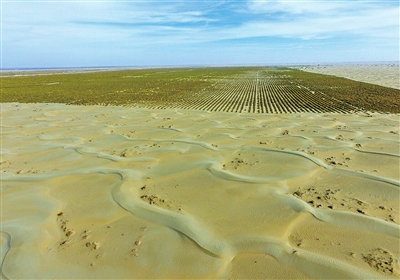 和田县苁蓉小镇种植的梭梭林(航拍图)。地区融媒记者 许晓龙摄