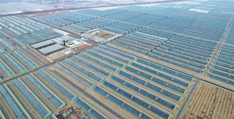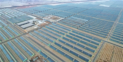 在和田县万亩设施农业基地,水肥一体化、温湿度自动化调控等技术实时监测作物生长环境,让昔日沙漠焕发新生。“这片曾经是沙漠,如今年产值达2.4亿元,带动2000余人稳定就业。”新疆盛世华强农业科技有限公司员工古丽艾仙·依明自豪地说。