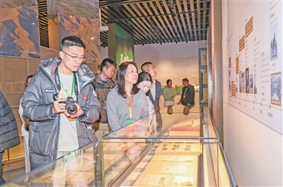 11月19日,参会嘉宾及代表参观新疆和田约特干考古勘探成果展。地区融媒记者 许晓龙摄