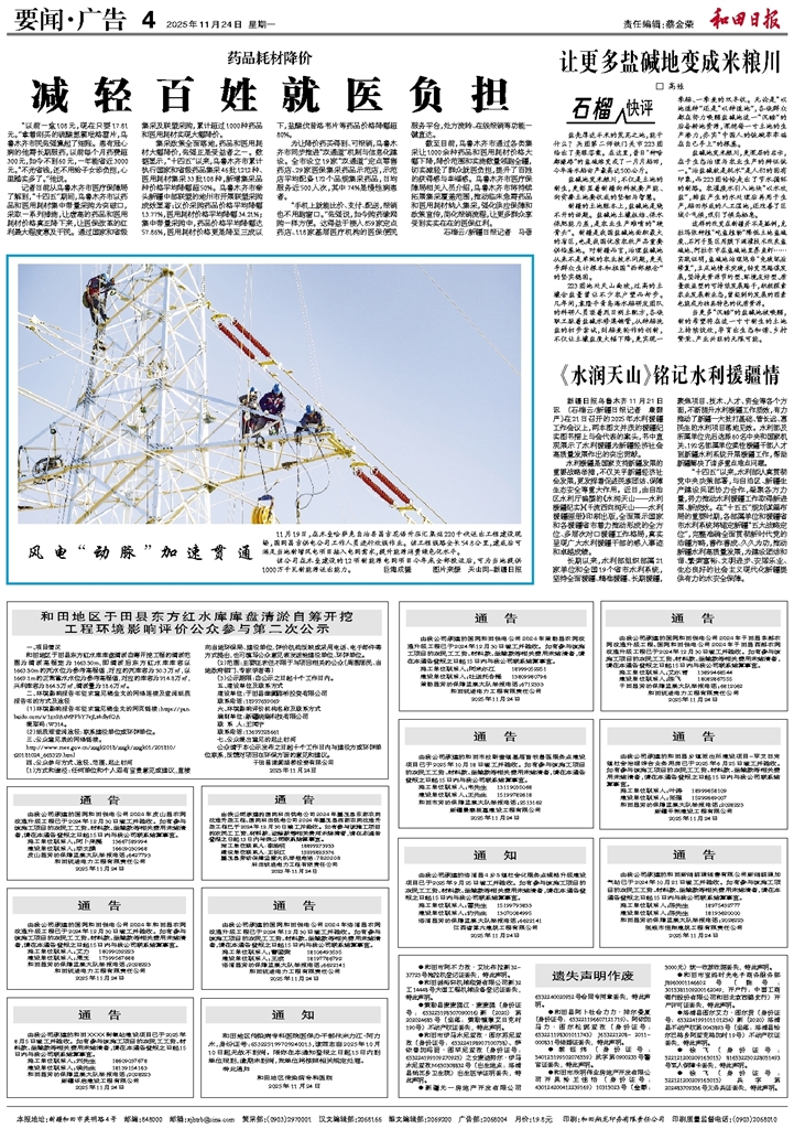 - 通告 由我公司承建的国网和田供电公司2024年策勒县农网改造升级工程已于2024年12月30日竣工并验收。如有参与该施工项目的农民工工资、材料款、运输款等相关费用未结清者,请在本通告登报之日起15日内与