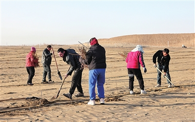 今年,和田地区已完成沙漠治理任务379.12万亩,沙生经济作物总面积已达74万亩,实现总产值7.65亿元。随着锁边工程带来的规模化、产业化发展,当地生态环境好了,老百姓的钱包鼓了,真正实现“既治沙、又增收”的良性循环。越来越多的群众加入到“织宽”这条“绿围脖”的队伍中,在这里不仅看到了绿色的希望,更看到了群众点沙成金的未来。