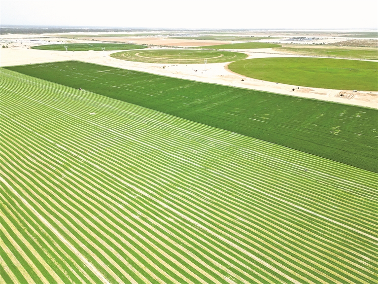 沙漠变绿地。