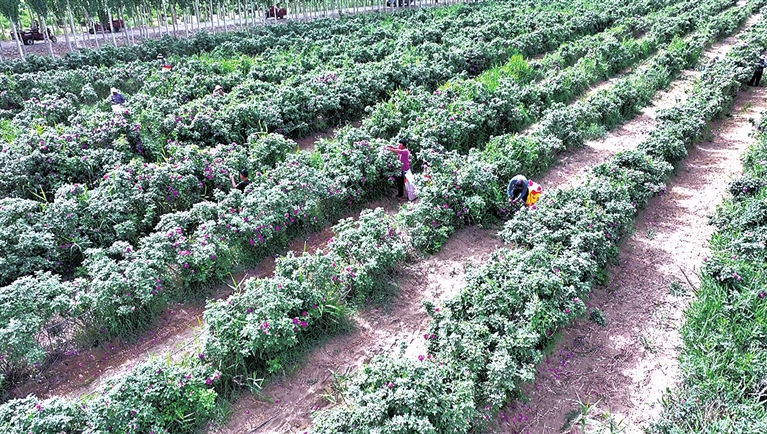 万亩玫瑰种植基地。