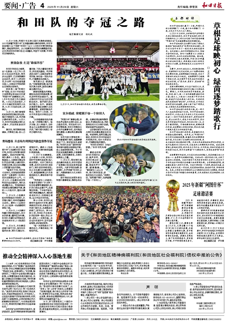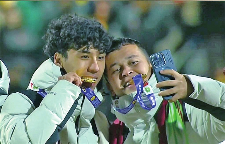 赛场边的球迷与队员挥手互动、高声欢呼,共同分享这份来之不易的荣耀,现场欢声不断、暖意融融。“看到家乡人这么支持,我们浑身是劲,获胜的信念无比坚定。”依明江说,“冠军属于球队,但荣誉属于每一个和田人。”
