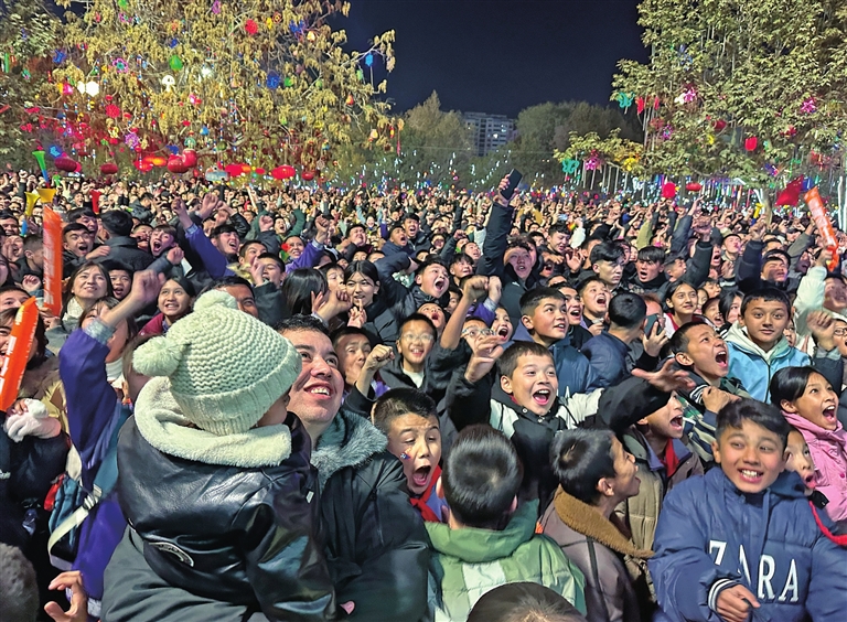 11月26日,得知球队挺进决赛的消息后,和田市团结广场聚集大批自发前来助威的市民。大家手持加油棒、助威喇叭,齐声呐喊“和田队必胜”,用最真挚的方式为球队加油鼓劲。