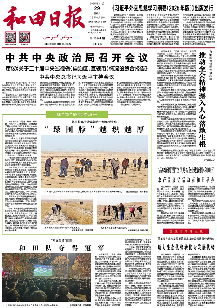 - “品味新疆”暨“全国龙头企业进新疆·和田行” 农产品展销活动在和田举办 地区融媒讯 (记者 阿的拉 阿卜杜拉 实习生 崔月婷)11月27日,“品味新疆”暨“全国龙头企业进新疆·和田行”农产品展销活动在和田约特干故城举办,聚焦和田特色农业发展,汇集全疆品类特色