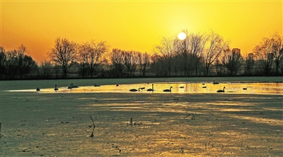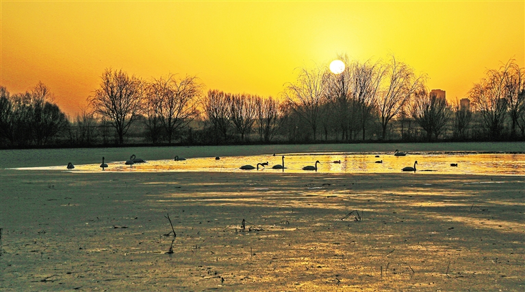 ① 11月30日,群鸟在甘肃张掖国家湿地公园栖息游弋。新华社发 陈礼摄