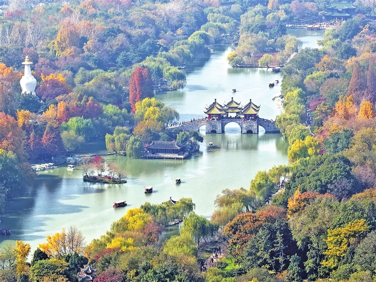 ② 11月30日拍摄的江苏扬州瘦西湖风景区初冬景色(无人机照片)。