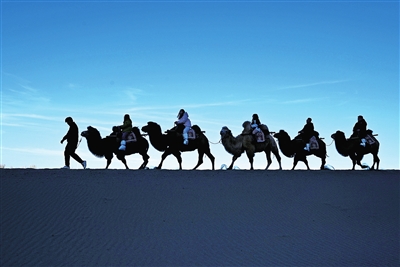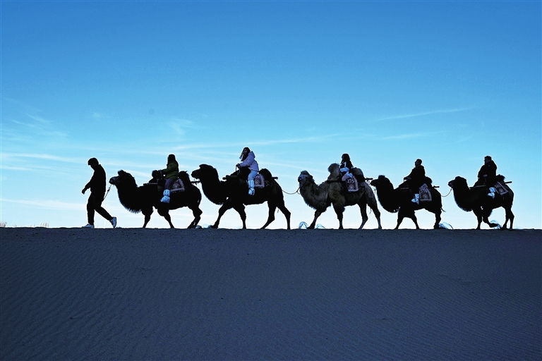③ 11月30日,游客在甘肃省敦煌市鸣沙山月牙泉景区游览。