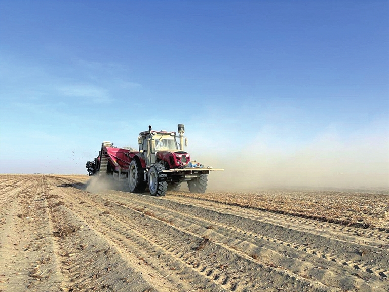 “我在这里负责操作采收农机,每天能挣200元。在家门口就能挣钱,真好。” 村民图尔荪托合提·沙杜拉笑着说。