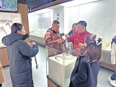 上午,考察团一行前往昆仑古事馆,在讲解员的引导下,通过实物展品、场景复原与图文介绍,沉浸式聆听昆仑神话传说与古丝绸之路的故事。走进和田博物馆,通过馆内珍贵的文物藏品,系统了解和田从远古到近现代的发展脉络。在和田玉博物馆,一件件温润通透的珍贵玉器令人目不暇接,考察团成员不时驻足观赏、交流探讨。