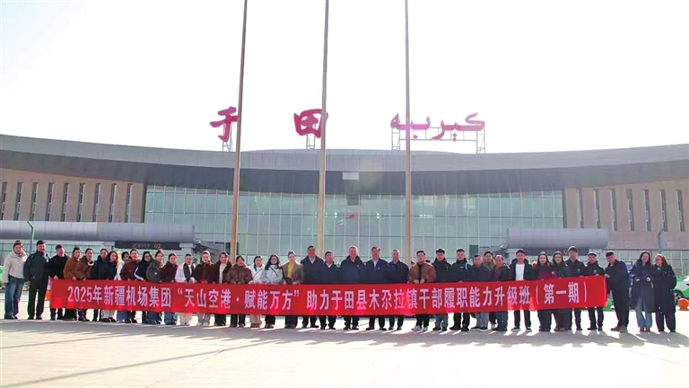地区融媒讯 (通讯员 李湘云)近日,新疆机场集团迎来了一批特殊的学员——来自于田县木尕拉镇的34名村干部。当天,“2025年新疆机场集团‘天山空港·赋能万方’助力于田县木尕拉镇干部履职能力升级班(第一期)”在乌鲁木齐正式开班。此举不仅标志着新疆机场集团对口帮扶工作向纵深推进,更彰显了集团将人才培养与能力建设作为乡村振兴核心抓手的坚定决心,为夯实木尕拉镇乡村振兴组织基础注入了强劲动力。