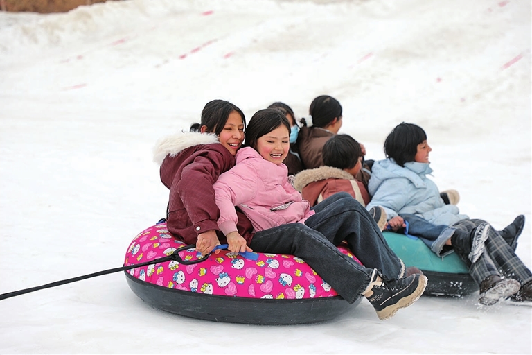 雪道上也不时有游客坐着雪圈滑下来,游客艾克拜尔·图如普说:“这是我们全家第一次来这里游玩,特意趁着周末带孩子过来放松一下。这里的游乐项目特别丰富,我们刚带孩子体验了坐滑雪圈和骑马,孩子玩得特别尽兴,我们也觉得很开心。”