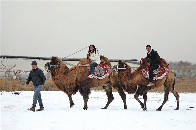 “为了满足不同游客的游玩需求,我们精心设置了多种特色项目,既有滑雪圈这样的经典冰雪项目,也有骑骆驼、骑马等特色体验项目,还有卡丁车、无动力乐园等适合亲子互动的游乐区域,让各个年龄段的游客都能在这里找到属于自己的乐趣。”和田新袖田园旅游开发有限公司董事长万金亮说。