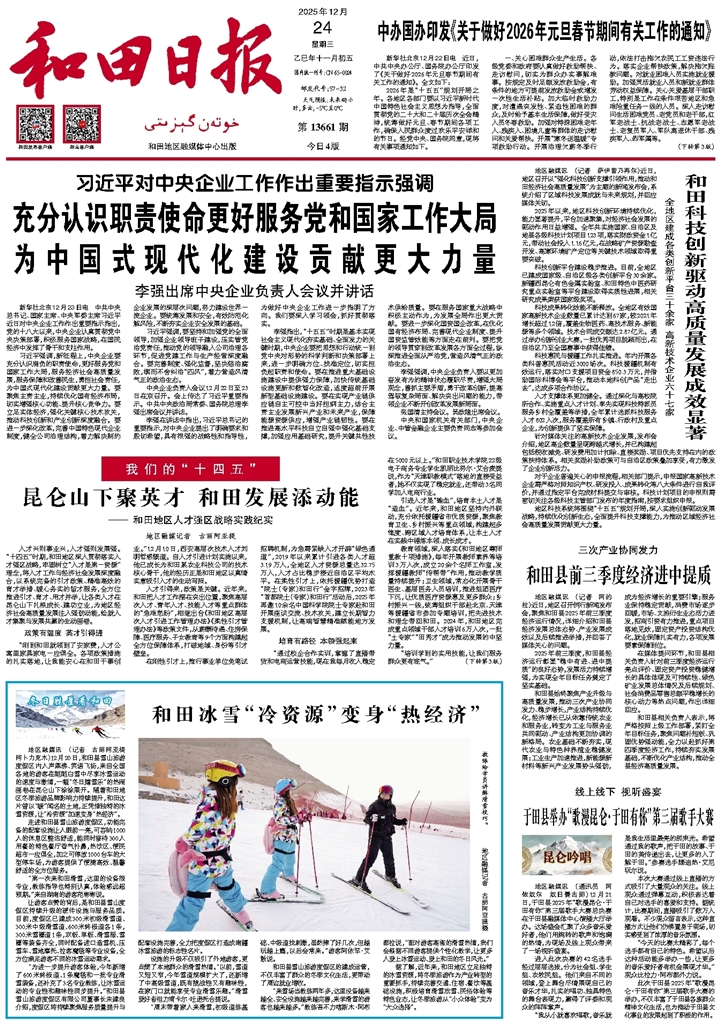 - 昆仑山下聚英才 和田发展添动能 人才兴则事业兴,人才强则发展强。“十四五”时期,和田地区深入贯彻落实人才强区战略,牢固树立“人才是第一资源”理念,将人才工作与经济社会发展深度融合,以系统完备的引才政策、精准高效的育才举措、暖心务