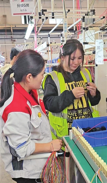功夫不负有心人。短短几个月,布海且木罕的操作速度与产品合格率稳步提升,月工资也从最初的基础档涨至4500元。“拿到工资那天,我第一时间给妈妈打电话,她在那边听着就哭了,说我长大了。”布海且木罕眼角湿润,那是自豪的眼泪。如今,她已熟练掌握岗位技能,还与同事结下深厚情谊。“我们像石榴籽一样紧紧抱在一起,工作互助,生活互相关心。”一次她生病发烧,同事们轮流照顾、送药煮粥,让她在他乡感受到家的温暖。