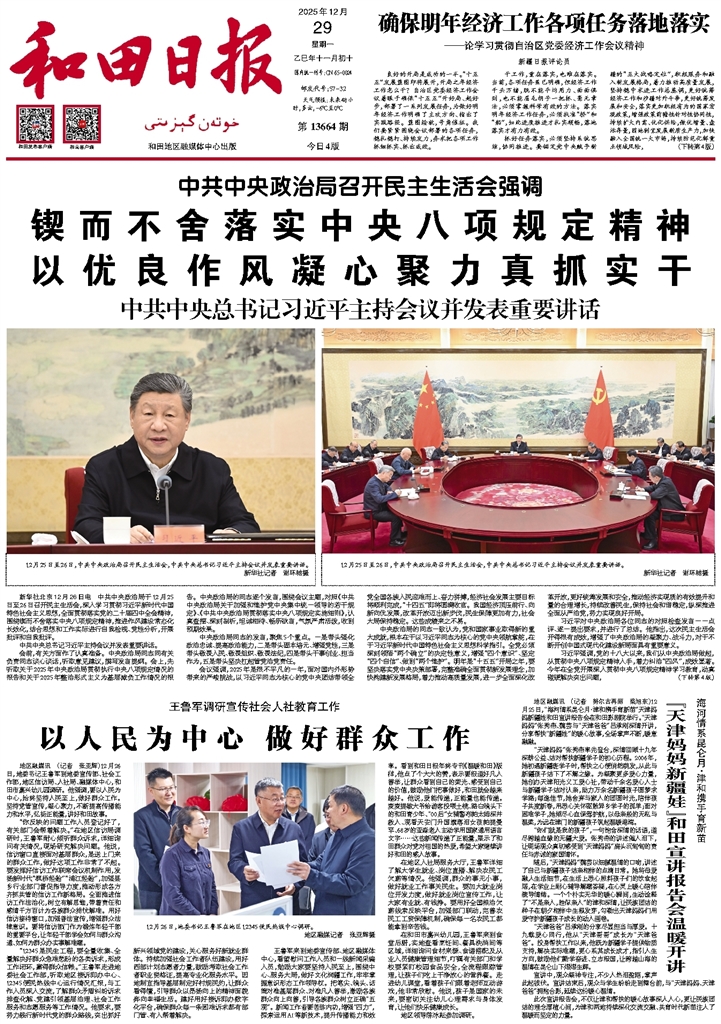 - 锲而不舍落实中央八项规定精神 以优良作风凝心聚力真抓实干 新华社北京12月26日电 中共中央政治局于12月25日至26日召开民主生活会,深入学习贯彻习近平新时代中国特色社会主义思想,全面贯彻落实党的二十届四中全会精神,围绕锲而不舍落实中央八项规定精神,