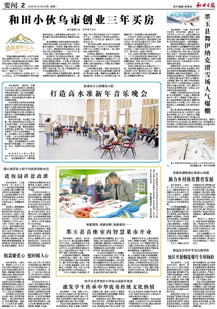- 进校园讲思政课 地区融媒讯 (记者 阿的拉 阿卜杜拉)12月25日,曾在国庆节期间因暖心送游客土桃子而圈粉无数的和田大叔麦麦提敏·艾麦尔,走进墨玉县雅瓦乡中学开展思政课宣讲,活动通过线上线下同步进行,为41