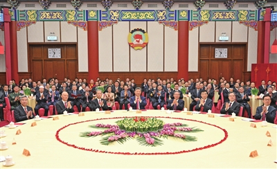 在京中共中央政治局委员、中央书记处书记,全国人大常委会、国务院部分领导同志,全国政协领导同志和曾任全国政协副主席的在京老同志出席茶话会。