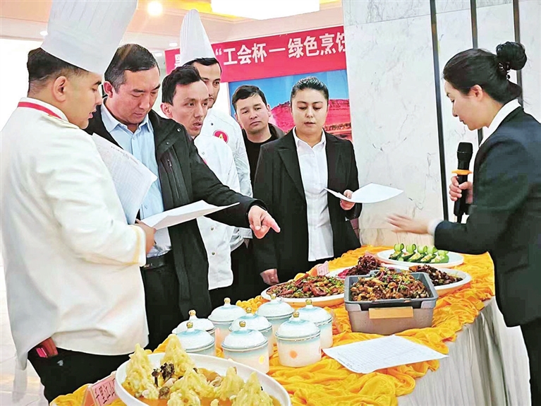 地区融媒讯 (通讯员 伊力哈尔)为提高餐饮行业技能水平,丰富从业人员业余生活,2025年12月26日,墨玉县“工会杯——绿色烹饪·健康生活”餐饮行业劳动技能大赛在县会务接待中心火热开赛。赛事由墨玉县总工会主办、县会务接待中心承办,吸引全县38名餐饮从业者同台竞技,以匠心厨艺诠释行业风采,为县域旅游服务业发展注入新动能。