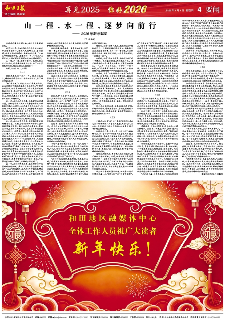 当新年的曙光照耀大地,我们又迎来新的出发。 回望2025年,在以习近平同志为核心的党中央坚强领导下,亿万人民迎难而上、奋力拼搏,我国经济顶压前行、向新向优发展,“十四五”即将圆满收官。展望新的
