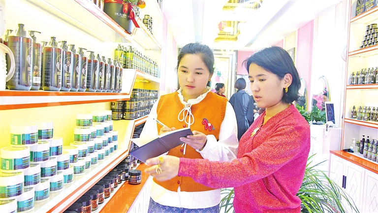 创业难,产品推广更是难。为拓宽销路,夏热排提从零学习电商运营,通过直播分享护发知识拓展线上渠道;同时深入本地集市摆摊,开设线下门店,让消费者亲身感受产品功效。如今,产品已从洛浦销往全国,线上销售占比达60%,公司年销售额突破70万元,年纯收入稳定在20万元左右,在洛浦县城、多鲁镇及和田市布局了多家线下门店,逐步构建起线上线下融合的销售网络,产品知名度持续提升。
