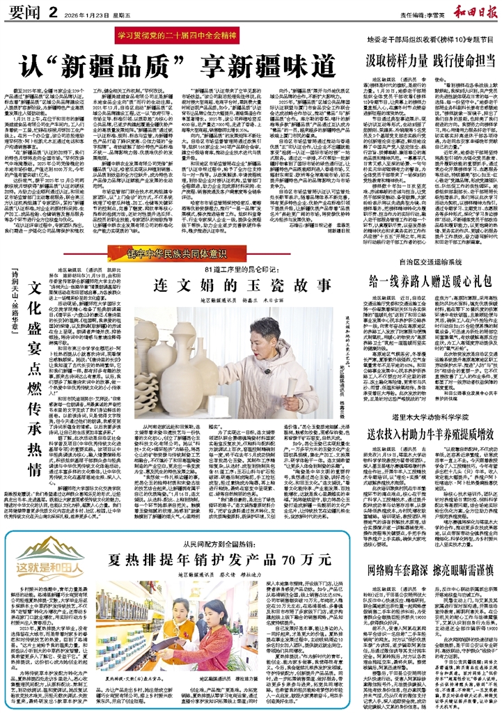 - 认“新疆品质” 享新疆味道 截至2025年底,全疆78家企业239个产品通过“新疆品质”区域公共品牌认证,标志着“新疆品质”区域公共品牌建设迈入提质扩容新阶段,为新疆特色产业高质量发展注入强劲动能。 1月21日上午,在位
