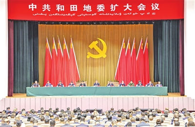 地区融媒讯  (记者  张亚辉)1月23日,中共和田地委扩大会议召开。会议坚定不移以习近平新时代中国特色社会主义思想为指导,深入学习贯彻党的二十大和二十届三中、四中全会精神,学习贯彻中央经济工作会议、中央农村工作会议和二十届中央纪委五次全会精神,学习贯彻习近平总书记出席自治区成立70周年庆祝活动期间重要讲话重要指示精神,完整准确全面贯彻新时代党的治疆方略,全面落实自治区党委十届十五次全会部署要求,总结2025年工作,部署2026年任务,动员各级党组织和广大党员干部以昂扬向上的精神状态、攻坚克难的奋斗姿态,做好“十五五”开局之年各项工作,在中国式现代化新征程中展现新作为、谱写新篇章。地委书记王鲁军主持会议并作题为《奋进新征程 展现新作为 建功新时代 奋力谱写中国式现代化和田实践新篇章》的工作报告。