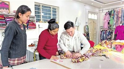 1月25日,记者走进和田市吉亚乡巴什吐格曼村的破茧个人原创服装工作室,“90后”服装设计师阿卜杜哈力克·艾力正指导员工制作顾客定制的艾德莱斯绸礼服,传统纹样与现代剪裁在设计里有机融合。