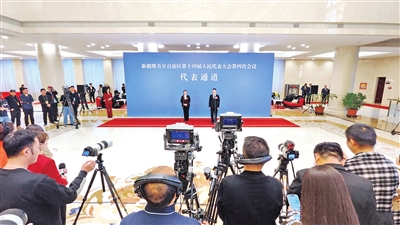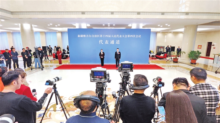 1月27日9时的新疆人民会堂,扛着“长枪短炮”的记者们早已在自治区十四届人大四次会议“代表通道”采访区等候记录来自一线的履职心声。