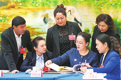 ② 1月29日,共青团和青联、总工会、妇联、台联、侨联、对外友好界委员分组讨论政府工作报告、自治区“十五五”规划纲要草案、两院工作报告等。委员们在会议间隙一起交流。