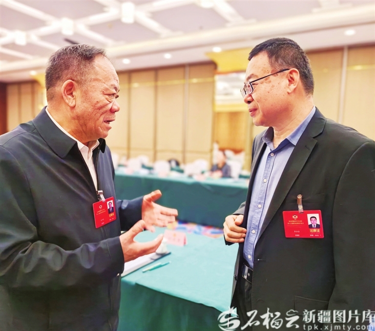 ① 1月29日,农业界、环境资源界委员分组讨论政府工作报告、自治区“十五五”规划纲要草案、两院工作报告等。委员们在会议间隙一起交流。天山网—新疆日报记者 约提克尔·尼加提摄