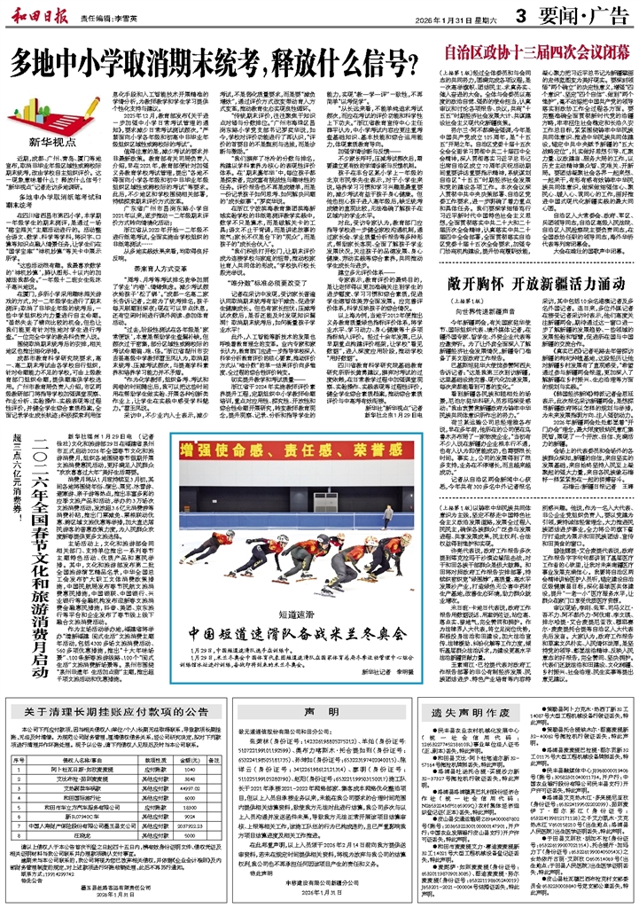 - 多地中小学取消期末统考,释放什么信号? 近期,成都、广州、青岛、厦门等地宣布,取消非毕业年级区域性或跨校际期末统考,改由学校自主组织评价。这一现象意味着什么?释放什么信号?“新华视点”记者走访多地调研。 多地中小学取消纸笔考试和期末
