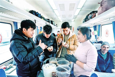 “这几天在和田玩得特别尽兴,没想到回程的火车上还能看到这么精彩的表演,旅途一点都不枯燥,感觉时间过得特别快,心里暖洋洋的。”回甘肃过年的贾少龙说。