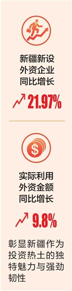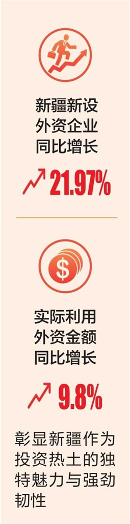 新疆日报乌鲁木齐2月2日讯 石榴云/新疆日报记者黑宏伟从自治区商务厅获悉:2025年,新疆新设外资企业同比增长21.97%;实际利用外资金额同比增长9.8%,两项核心指标稳步攀升,外资对新疆经济发展的支撑作用持续凸显,彰显新疆作为投资热土的独特魅力与强劲韧性。