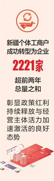 “数据跃升是政策精准滴灌与经营主体内生需求共振的结果。”自治区市场监督管理局登记注册处副处长董安东表示,转型后的经营主体在融资、投标、品牌建设等方面优势凸显,有效激发发展动能。新疆将持续深化服务改革,推动“个转企”从量的增长向质的提升迈进,为经济高质量发展注入强劲动力。