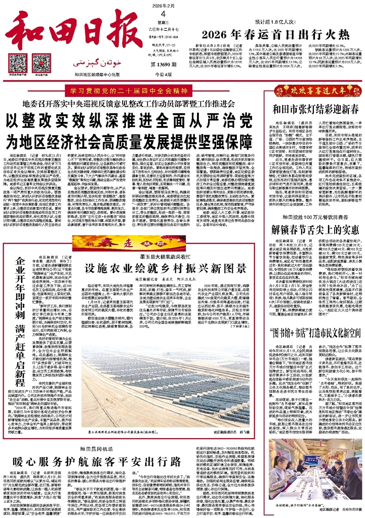 - 解锁春节舌尖上的实惠 地区融媒讯 (记者 阿的拉 阿卜杜拉)2月2日,记者从地区商务局获悉,为抢抓新春餐饮消费旺季,丰富群众节日餐饮体验,拉动餐饮行业消费增长,地区在“和田邀您来过年·我和亲戚过大年”活动期间,专