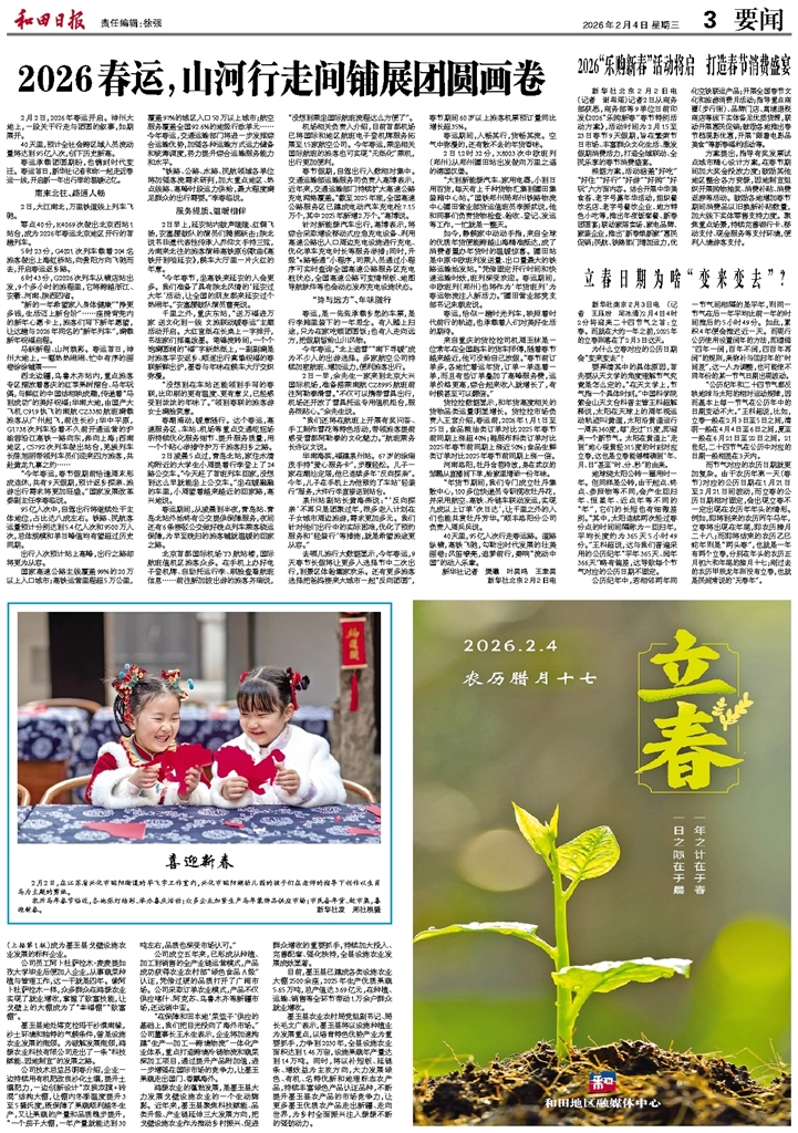 - 2026春运,山河行走间铺展团圆画卷 2月2日,2026年春运开启。神州大地上,一段关于行走与团圆的叙事,如期展开。 40天里,预计全社会跨区域人员流动量将达到95亿人次,创下历史新高。 春运承载团圆期盼,也镌刻时代变迁。春运