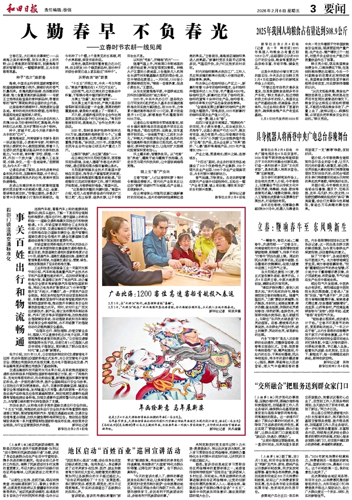 - 人勤春早 不负春光 立春已至,大江南北农事渐忙——从南海之滨的育种棚,到东北黑土上的沃野;从云贵高原的层层梯田,到黄淮海平原的智慧田间,一幅幅耕新图,正为丰收落笔筑基。 种子“芯片”焕新春 海南,中国农业科学