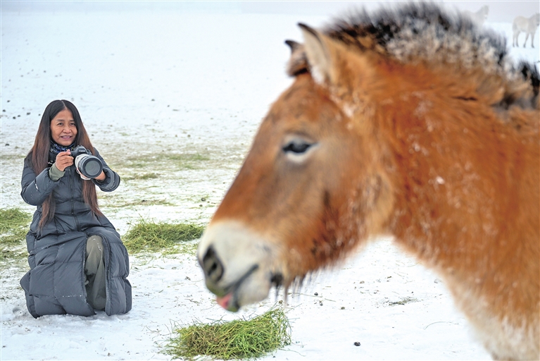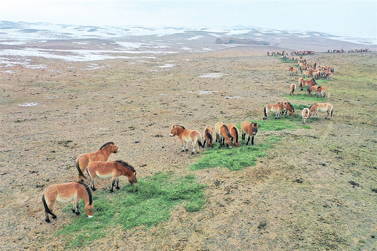 管护员穿梭在雪原沙漠间,驱车踏雪监测马群活动轨迹,排查野外生存隐患,为普氏野马筑牢越冬安全屏障。野马繁育研究所内,饲养员与兽医师24小时值守,细致观察野马饮食起居,监测幼驹健康,精准记录生长状况,为后续繁育和野化训练积累详实的科学数据。