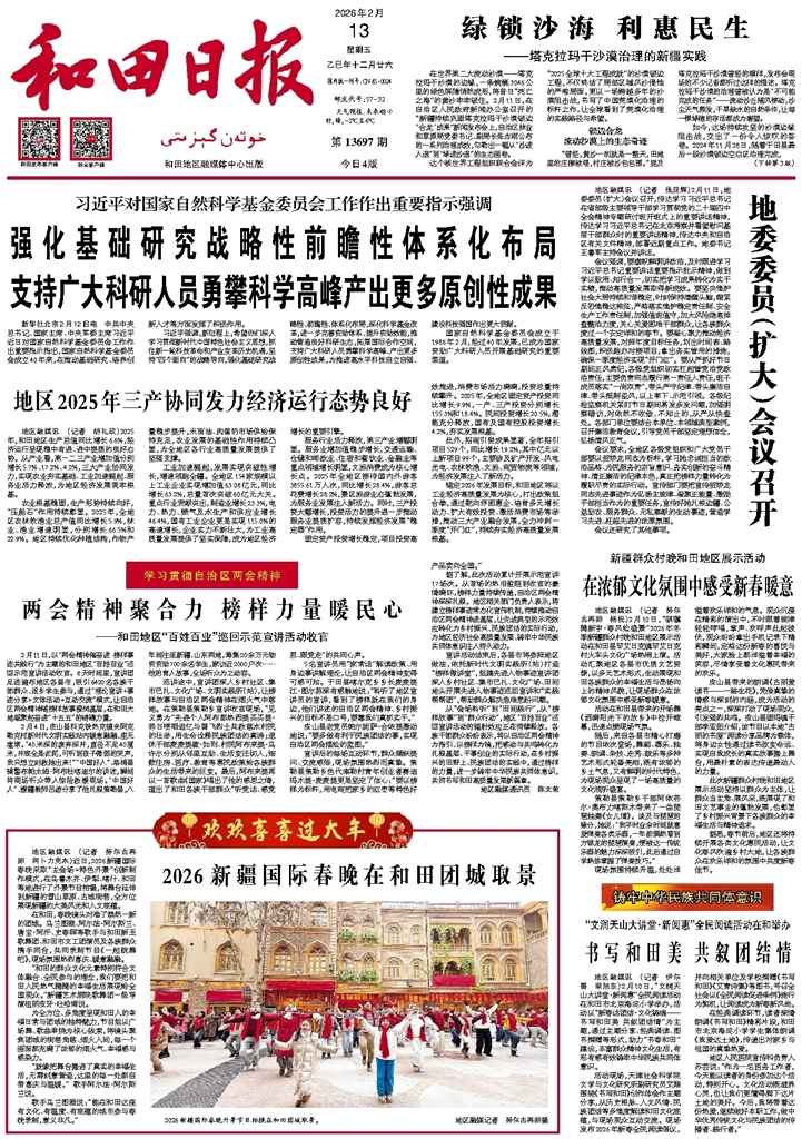 - 两会精神聚合力 榜样力量暖民心 2月11日,以“两会精神催奋进 榜样事迹共践行”为主题的和田地区“百姓百业”巡回示范宣讲活动收官。8天时间里,宣讲团足迹遍布地区各县市,吸引6420名各族干部群众、返乡学生参与,通过“理论宣讲+事