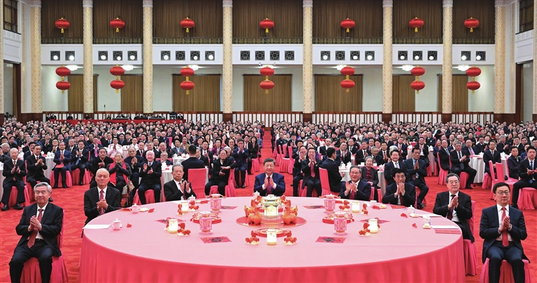 2月14日,中共中央、国务院在北京人民大会堂举行2026年春节团拜会。党和国家领导人习近平、李强、赵乐际、王沪宁、蔡奇、丁薛祥、李希、韩正等同首都各界人士欢聚一堂、共迎佳节。新华社记者 谢环驰摄