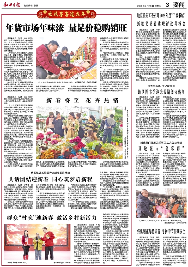 地区融媒讯 (记者 古哈尔尼沙 阿卜力克木)新春将至,和田大地年味渐浓。2月14日,记者先后走访农产品批发市场、大型超市、年货集市,所到之处货源充足、品类丰富、价格平稳,各族群众忙着采购年货,处处洋溢着喜庆祥和的节日氛围。