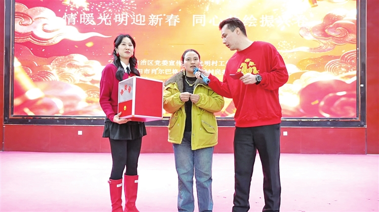 地区融媒讯 (记者 牛斌 阿卜杜合力力)2月13日晚,和田市肖尔巴格乡光明村新时代文明实践站内张灯结彩,欢声笑语不断。一场由村民自编、自导、自演的“情暖光明迎新春 同心共绘振兴卷”群众村晚在这里欢乐上演,全村老少齐聚一堂,用最朴素真挚的方式迎接马年春节的到来。